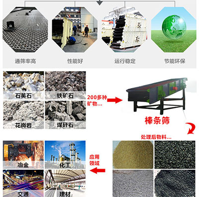 1548型號振動式棒條篩應用范圍:適用于煤炭、礦山、冶金、建材、電力、水利、輕工和化工等行業。