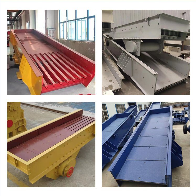 振動給料機可以把塊狀、顆粒狀物料從貯料倉中均勻、定時、連續的送入受料裝置,在沙石生產線中可為破碎機械連續均勻的喂料,并為物料進行粗篩分。其適用于破碎機前大塊物料的均勻給料。特別適用于黑色或有色金屬礦石、建筑石料粗碎前的給料,是粗碎破碎機前配套給料的理想設備。