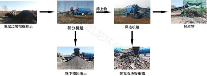 填埋垃圾處理生產線有振動給料系統,振動篩分系統,風選除塵系統,物料破碎系統,擠壓成型系統等、可根據垃圾陳腐程度按照形狀大小分揀,還可按照體積輕重分揀,更能按照物料種類分揀,處理量大,分揀細,物料明顯,兼具了生態與經濟雙重效益,是未來環保設備發展的大趨勢。